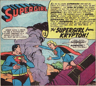 We also see the beginning of the recurring theme early on in Supergirl stories of her wondering if she would do a good job, earn Superman's respect, and become a hero. The look of subtle worry on the third panel is sublime.
