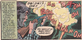 Old Man Stanley discovers Supergirl in his basement and fires at her rapidly. He must be a quick shot because you need to reload that rifle after each blast. Thankfully Supergirl's powers don't give out on her (they remain 'on' this entire story) and she is able to shrug off the buckshot without any problem.