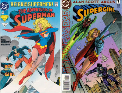 That Dan Fraga commission intrigues me. Was it supposed to be Linda/Matrix? She definitely wears the costume, and back in 2007 Kara was still being dragged through the mud. However the diminute jetpacked aliens seem to scream "Silver Age campiness" to me.
